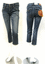 | <『可愛いハートステッチがバックポケットに施されたおしゃれなサブリナジーンズ♪夏の必須アイテム!!』画像カラー:デニムブルーレディースサイズ(実寸)インチ表示26ウエスト75cm、股上19cm、股下73cmヒップ |